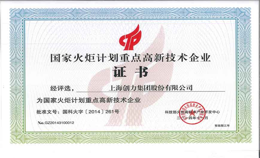 - 2014年國家火炬計(jì)劃重點(diǎn)高新技術(shù)企業(yè)