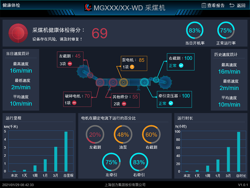 通過融合振動、溫度、壓力等多路傳感器,基于大數(shù)據(jù)算法服務(wù)器,實現(xiàn)采煤機環(huán)境感知和精準檢修